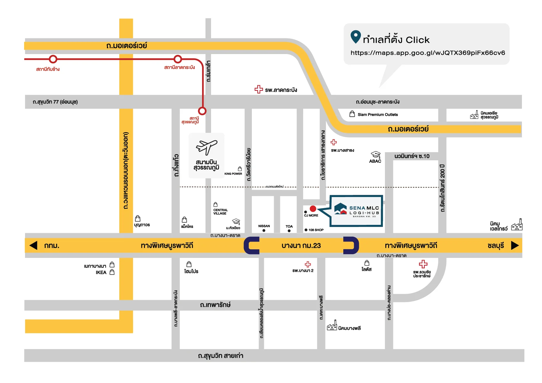 Connected to major industrial zones and the Eastern Economic Corridor (EEC) development project, which includes three pilot provinces: Chachoengsao, Chonburi, and Rayong, as well as access to Laem Chabang Port and U-Tapao Airport.